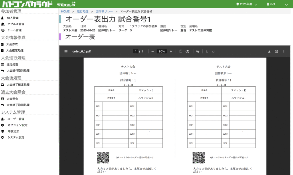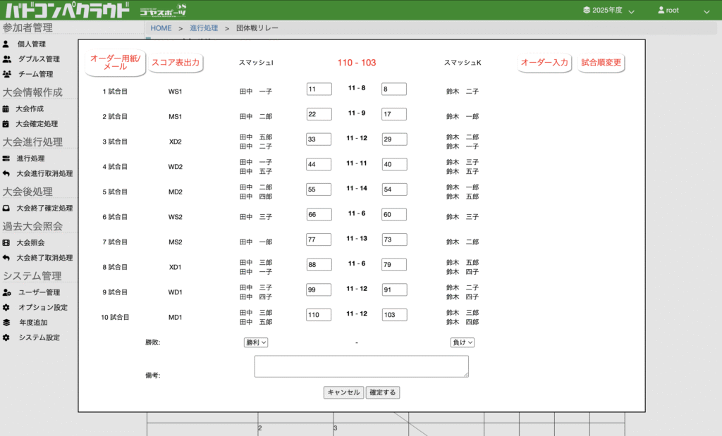 「バドミントン世界ジュニア選手権大会2024」にて行われた、110点リレー形式団体戦用の機能を追加しました。